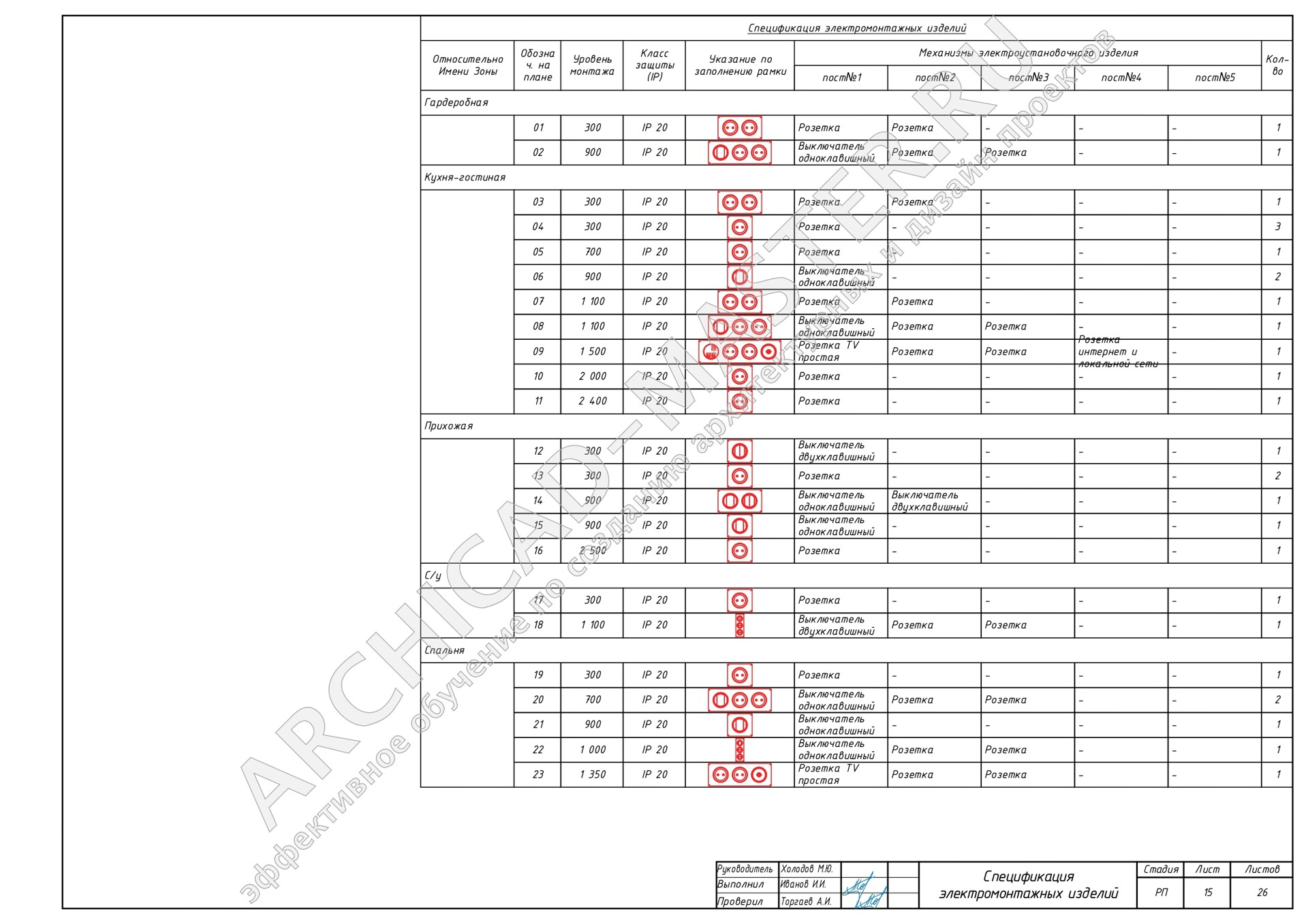 Схема расстановки электроприборов