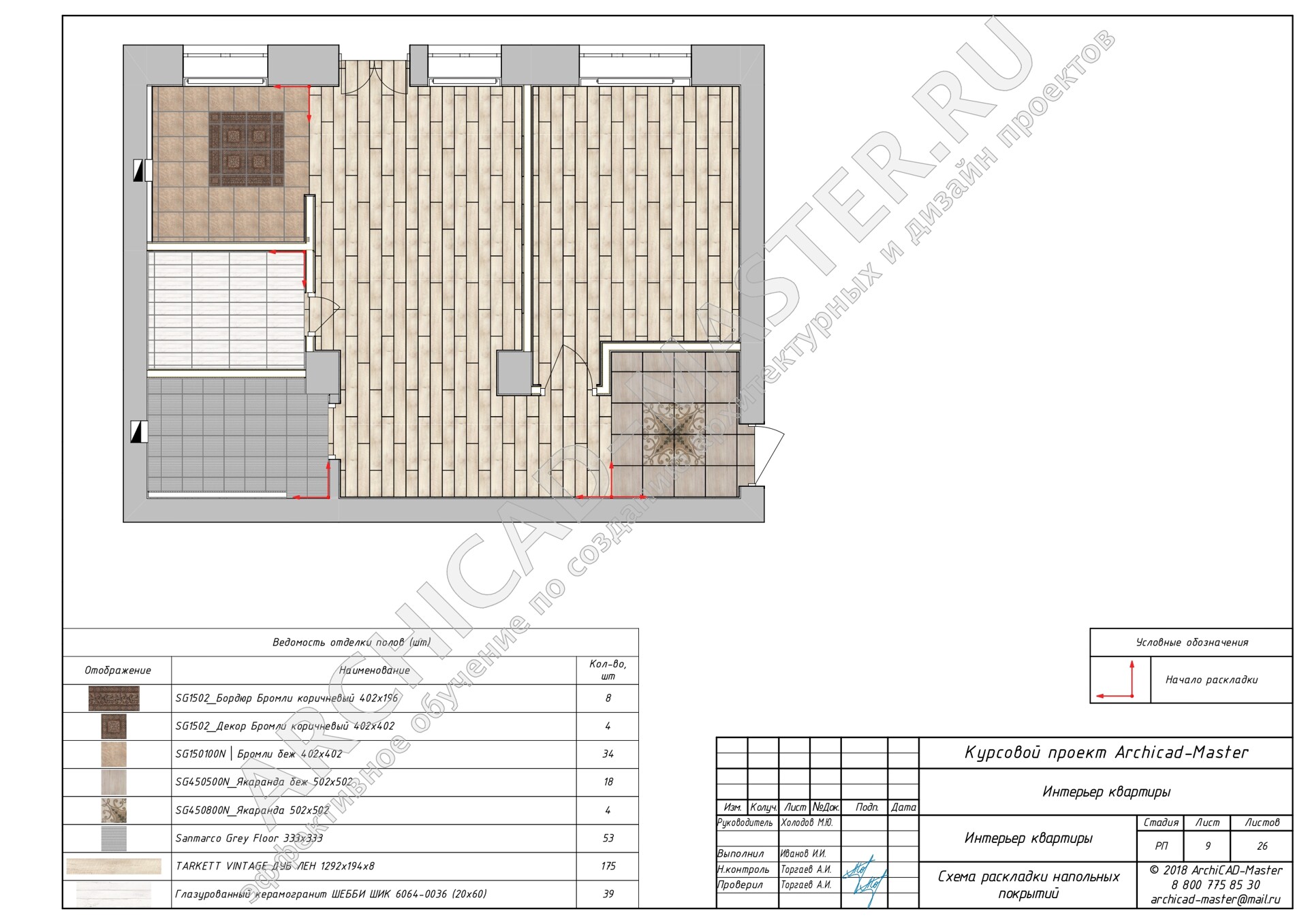 В конце урока мы создадим интерактивный каталог “Ведомость отделки полов”, который автоматически посчитает количество плитки и ламинат в штуках.